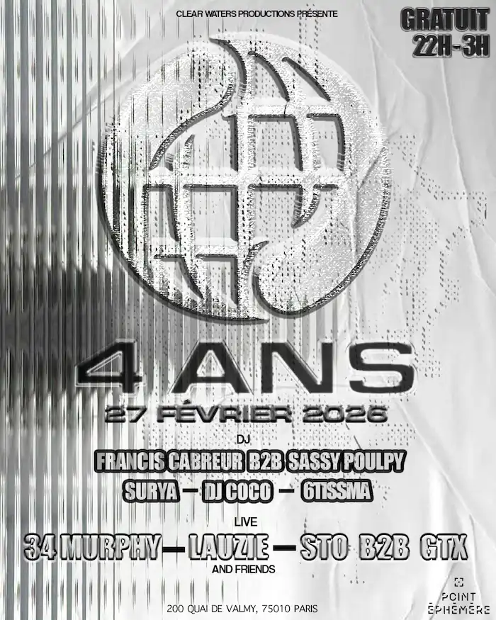Rendez vous le 27 Février prochain dés 22h au point Éphémère pour les 4 ans de Clear Waters Production !