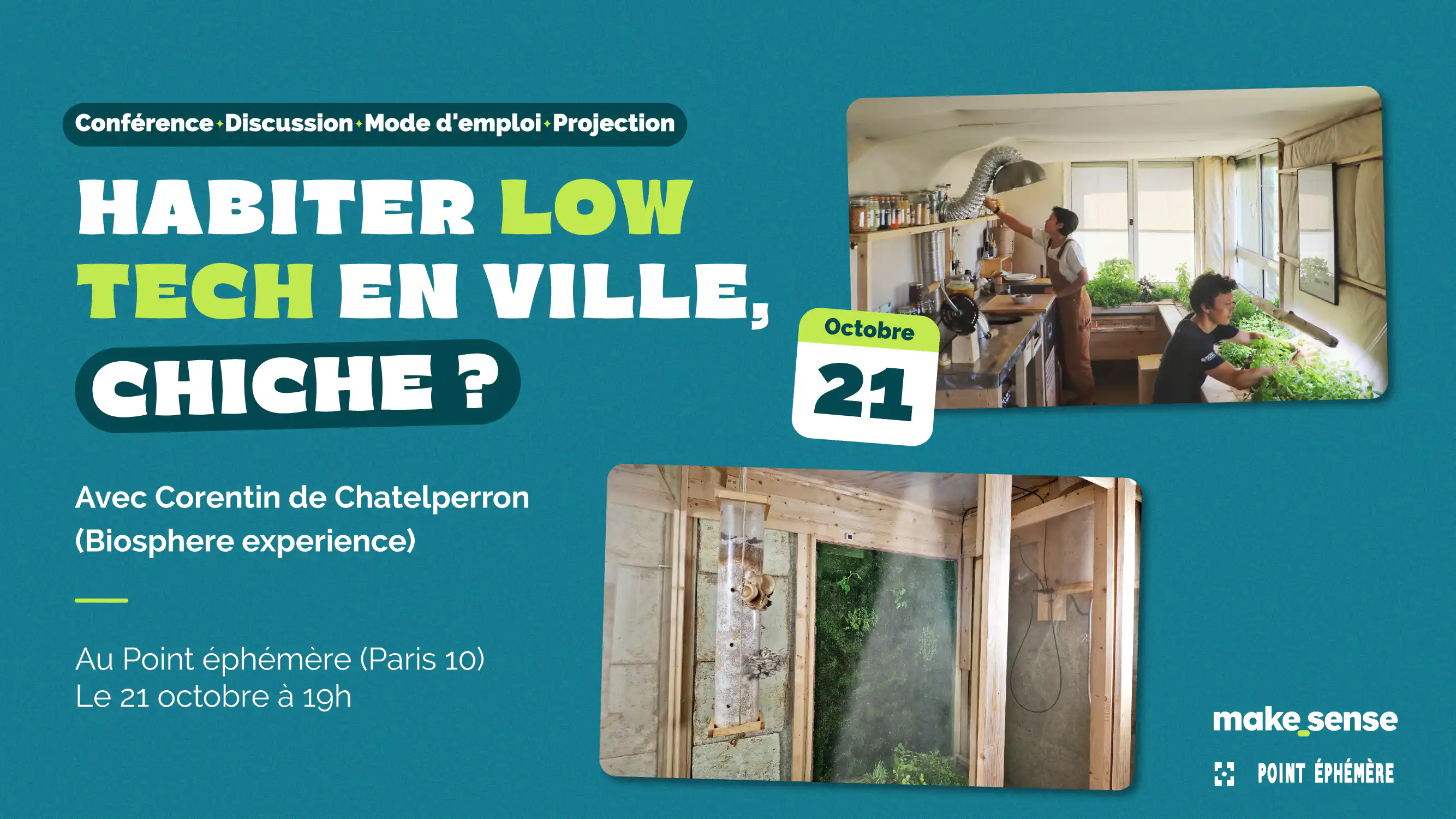 Lors de cette soirée, Corentin, Géotrouvetout low tech incroyable, sera là pour présenter son expérience d'appartement du futur qui ne produit pas de déchets, divise par 10 la consommation d'eau, répond aux objectifs 2050 de l'ONU pour les émissions de gaz à effet de serre.