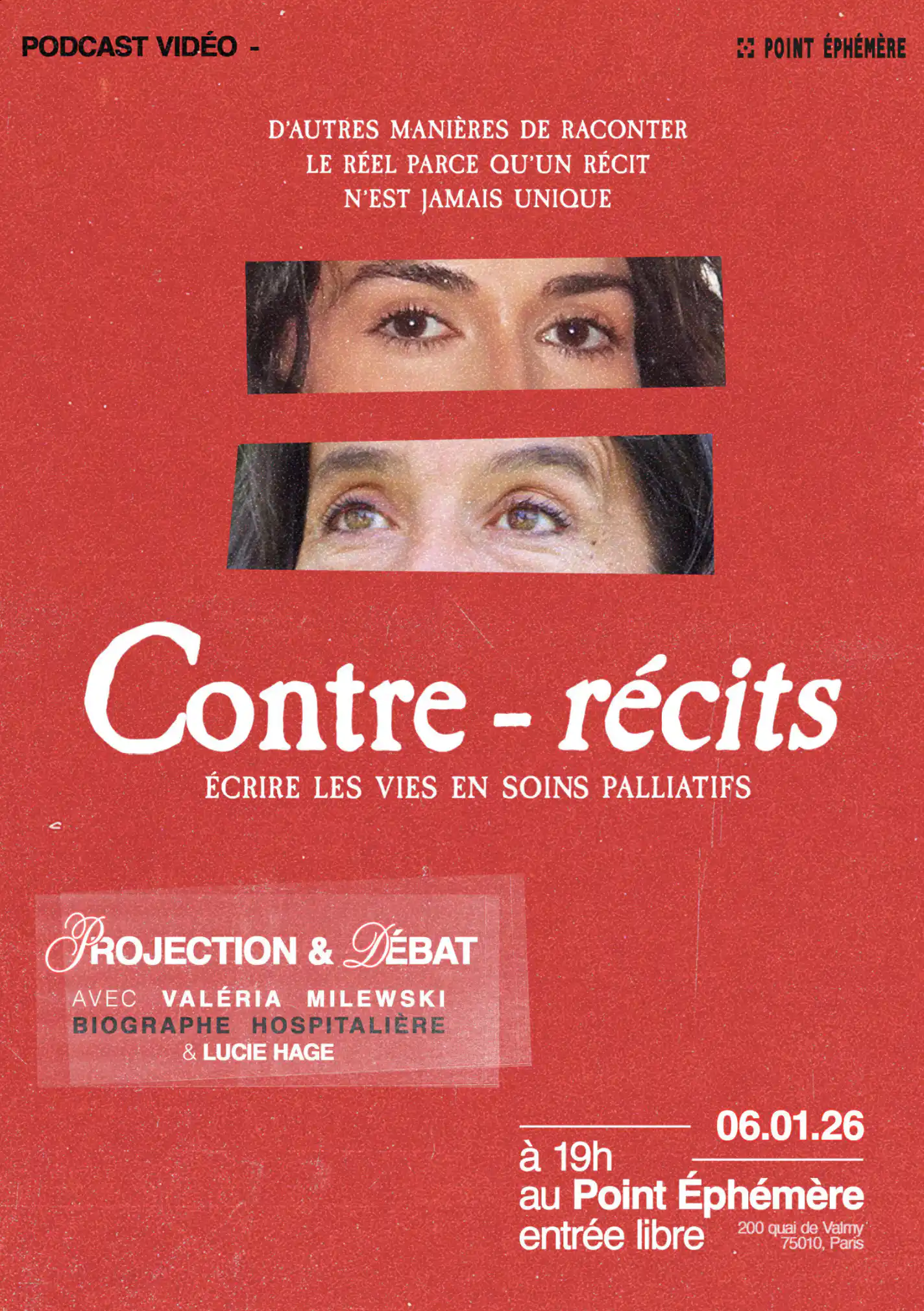 L’épisode projeté est consacré à Valéria Milewski, biographe hospitalière. Dans une conversation intime avec Lucie Hage, elle raconte son travail auprès de personnes en soins palliatifs : écrire leurs biographies, recueillir leurs mots et leurs souvenirs pour laisser une trace à leurs proches et permettre une parole avant la mort.