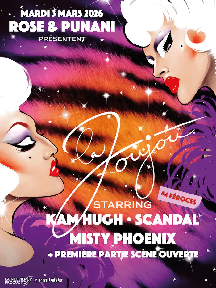 Après avoir fait vibrer le Cabaret Sauvage, La Joujou s’installe pour la première fois au Point Éphémère le 3 mars prochain. Rose et Punani y ouvrent un nouveau chapitre de leur soirée culte, plus audacieuse et flamboyante que jamais.