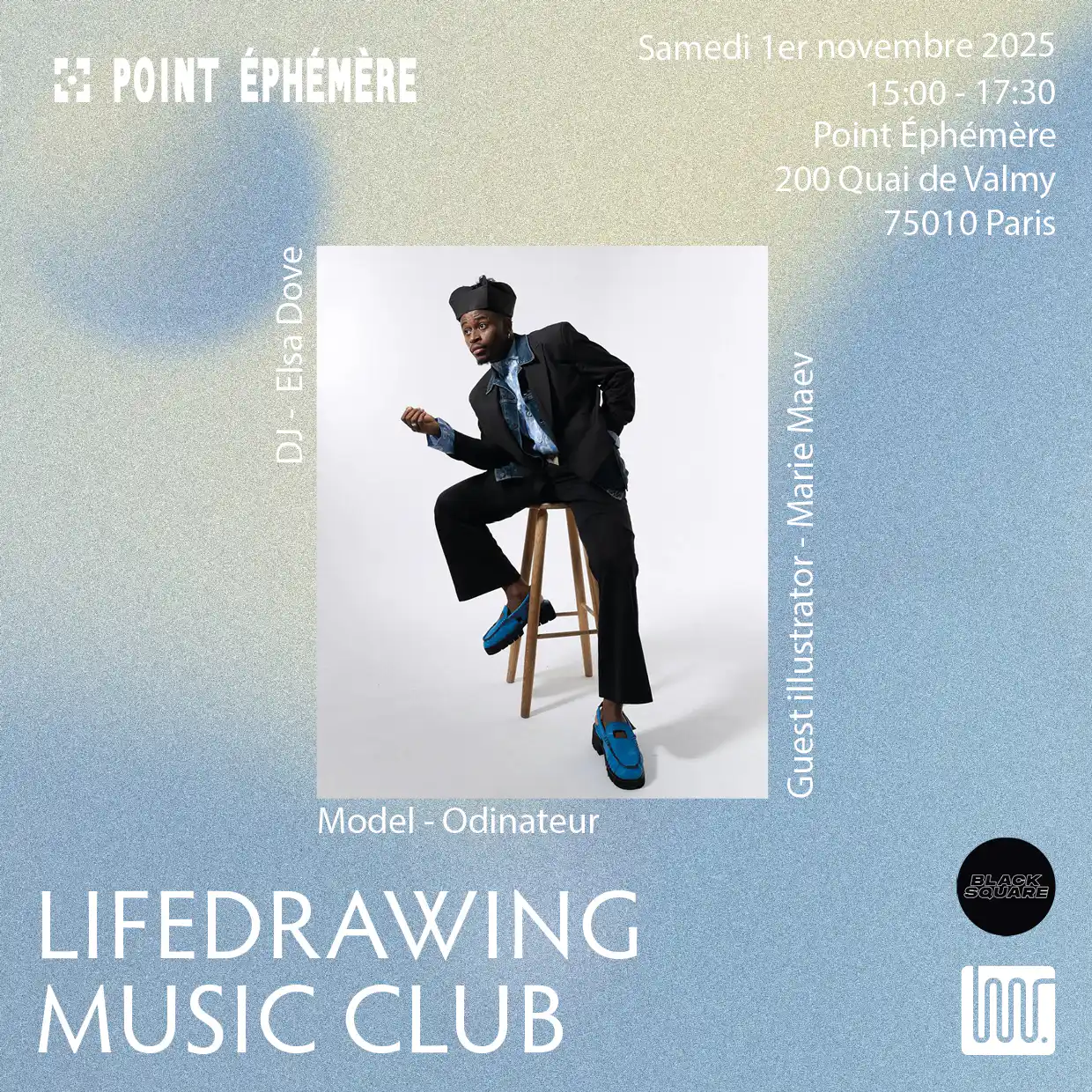 Pour cette session unique, il devient modèle vivant : entre poses statiques et performances dansées, le dessin prend vie sur scène.
