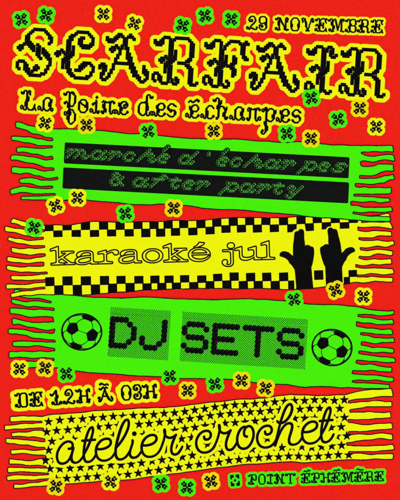⚽️ un atelier de crochets avec @bayo_julie , un karaoké JUL (@pox_star )et Amir, dj-set de @rejane_404 ) et plein d’autres choses !