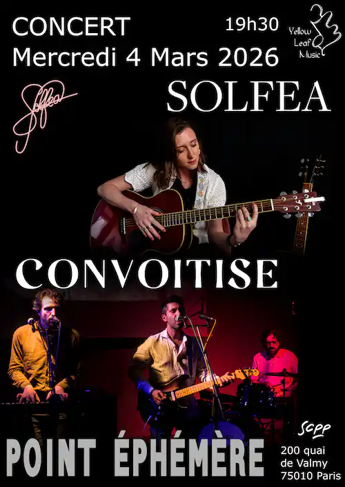SOLFEA, la jeune chanteuse nous propose un live mêlant tantôt rock et pop douce et moderne. Solfea va très vite se faire un nom sur la scène Parisienne; Elle sera accompagnée pour l'occasion de musiciens exceptionnels (Geoffroy Tekeyan, Quentin Duchêne, Leni Mirasi-Wagner et Fabrizio Dori).