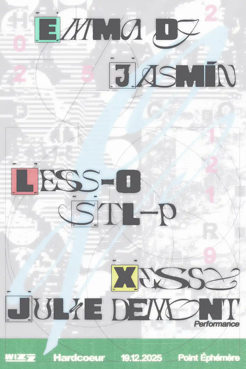 Quand les univers de Wizz et d’Hardcoeur se rencontrent, ça fait trembler les murs et couler la sueur : une collaboration née d’une passion commune pour les rythmes percussifs, les sets sans barrières de genres et les dancefloors brûlants.